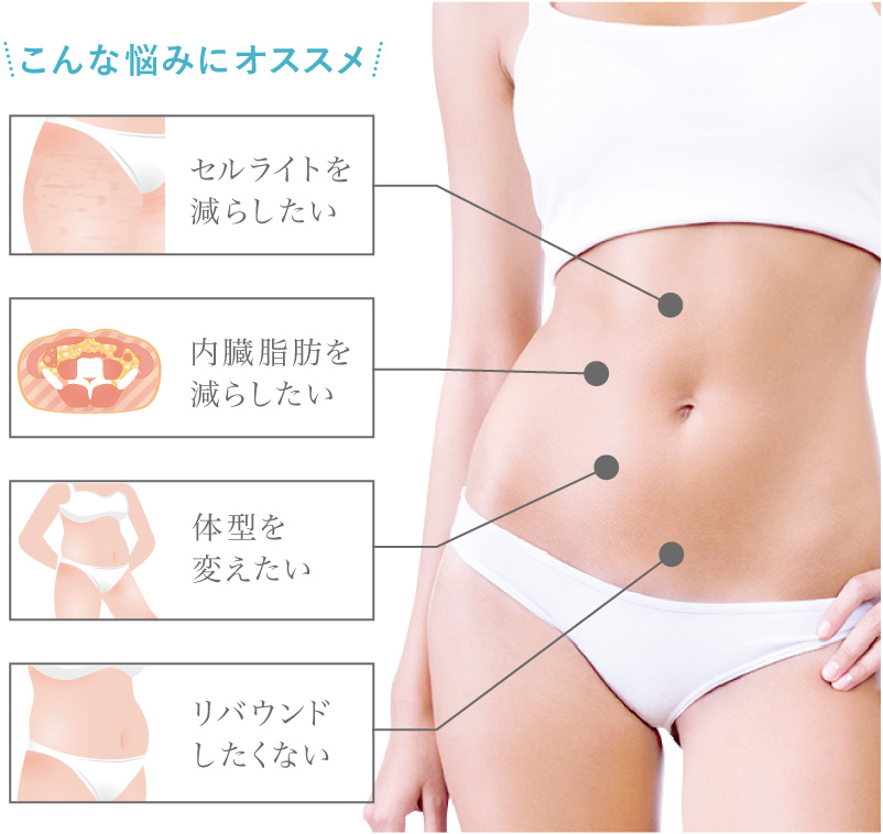 痩身のお悩みから、バストアップ、多汗症・わきがまで、ボディに関するあらゆるお悩みを症状や状態に合わせて、総合的に治療できるのが浦和・北朝霞・南越谷・上尾駅前メディカルの強みです。最適な治療を組み合わせることで、理想的なボディを手に入れることができます。